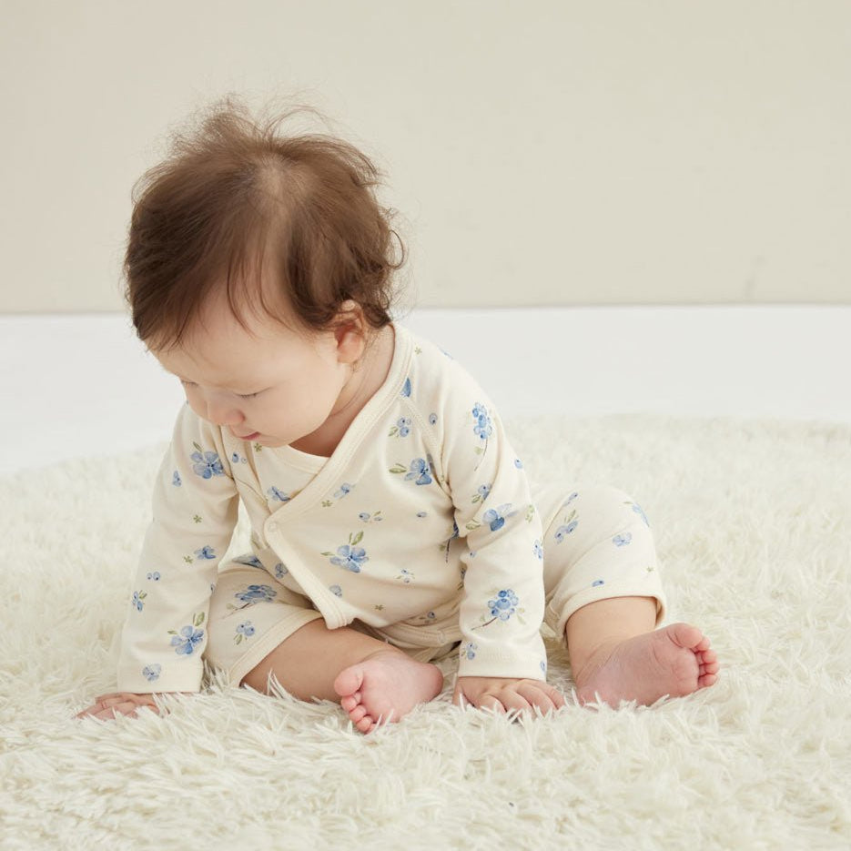 Front of Baby Organic Kimono Sleeper-Blueberry