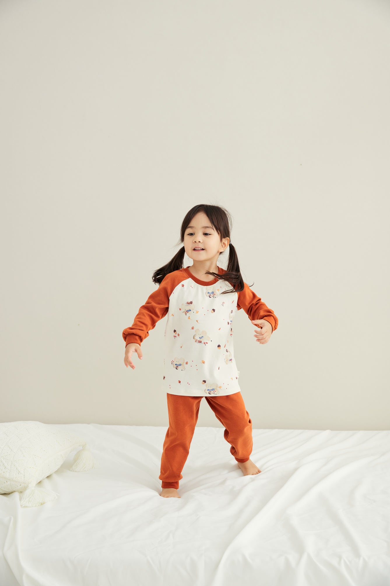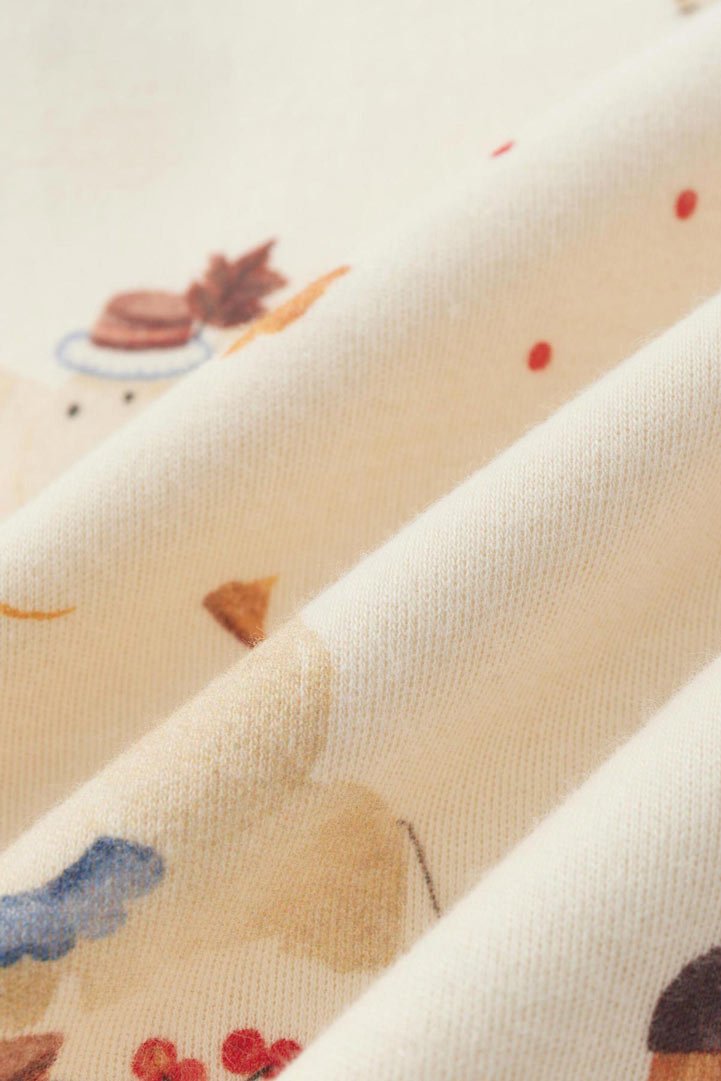 Lounge sets come with ultra-soft organic cotton, with a long-sleeve top and bottom. Two snap buttons at the front for easy pulling on. Featuring a neutral maple pattern print. The essential comfy and healthy apparel for kids to wear at home.