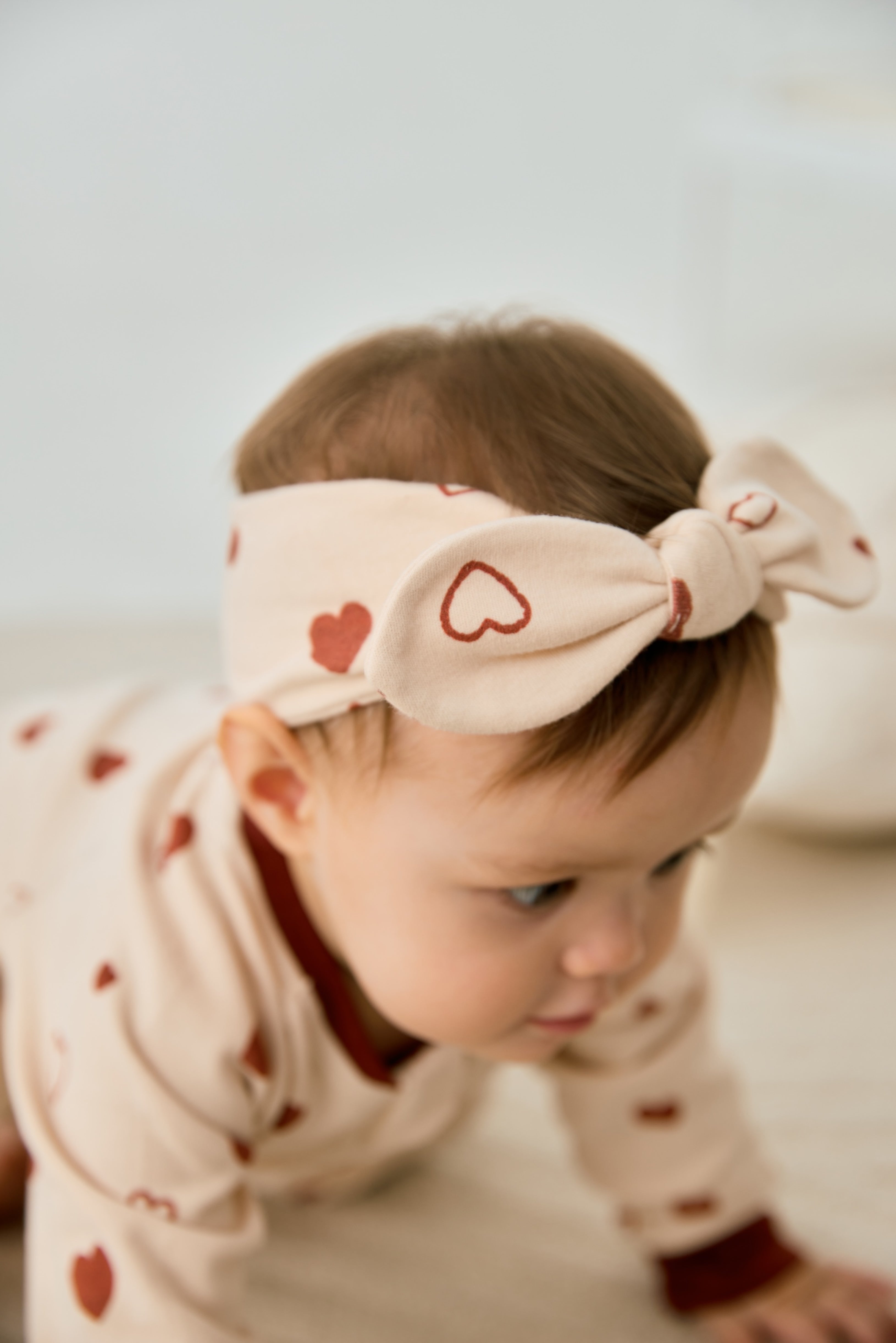 Baby Organic Cotton Zip-up Sleeper-Hearts and head bow