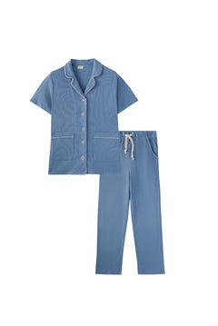 The two-piece short-sleeve toddler lounge set in the softest GOTS-certified organic cotton. Perfect for active babies at home to wear with lightweight, breathable, and non-harmful fabric in unisex color and print.
