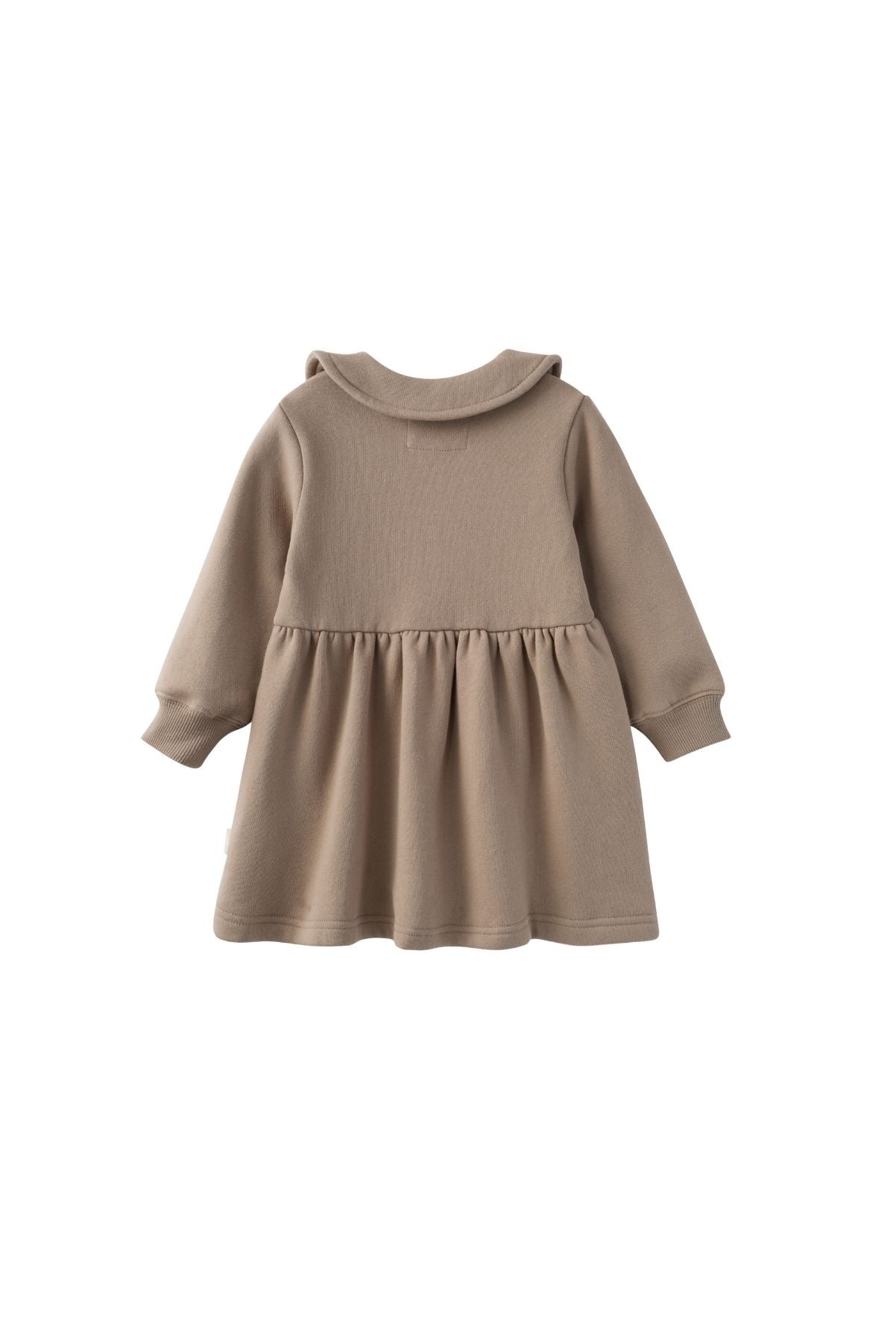 baby wear norsu organic toddler fleece collar sweatshirt dress winter twig and  is smiling